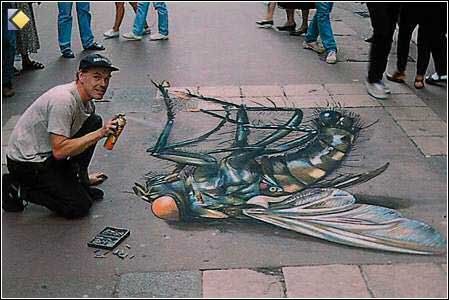 以他以假亂真的街頭粉筆立體繪畫聞名於藝術界,他經常游走於英國,法國,德國,美國,澳大利亞比利時等國家,用粉筆為當地的街頭添一道新穎獨特的風景。