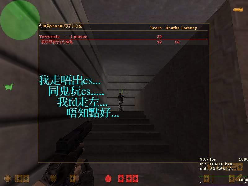 那天晚上,我正在自己的電腦上玩CS,突然網絡斷了,我就悶到不得了,就好悶咁自己開場自己一個玩!聲明先,我個版本係冇裝BOT既!