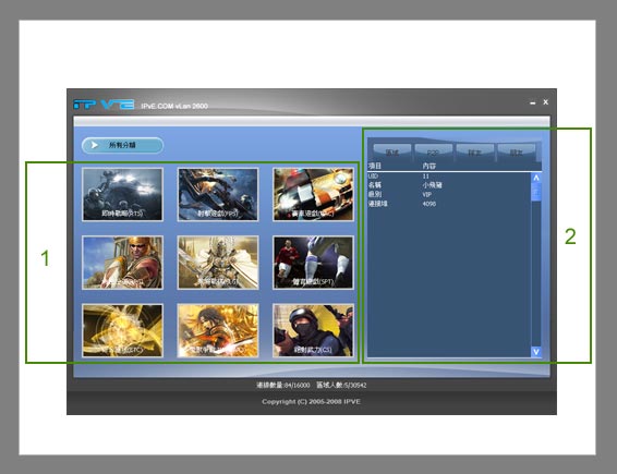 2---" 用戶介面 " 剛登入.會顯示.玩家的基本資料..往後會陸續的.完善.添加如 "玩家門派" "遊戲績分" 等等豐富內容