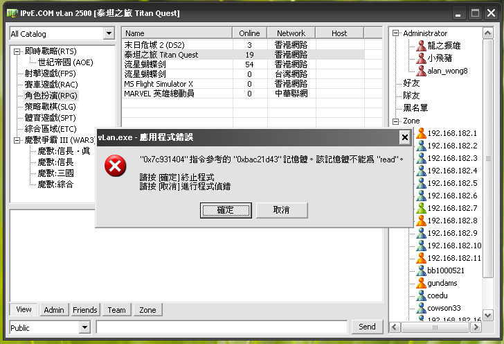 小弟能夠正常 Login 但當選了所想進入的真區,程式正在下載正線人名單時就出現錯誤