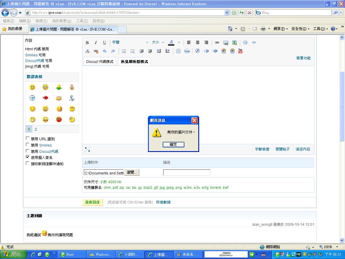 原帖由 alan_wong8 於 2009-10-15 22:14 發表 咁唯有每次逐張圖上傳, 又或者試用firefox