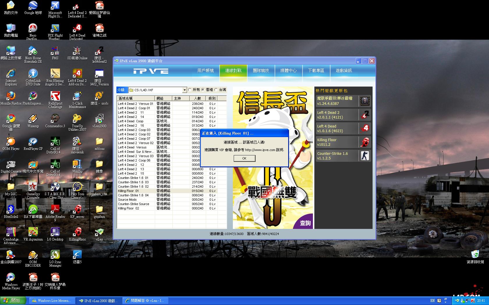 Killing Floor 01 ser人數為15/240,但系彈出'連接區域...該區域已人滿' 既信息