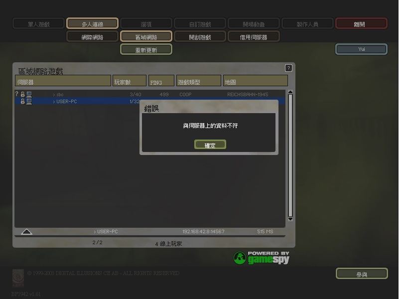» 戰地1942"與伺服器上的資料不符"(求解)(重裝都唔得)