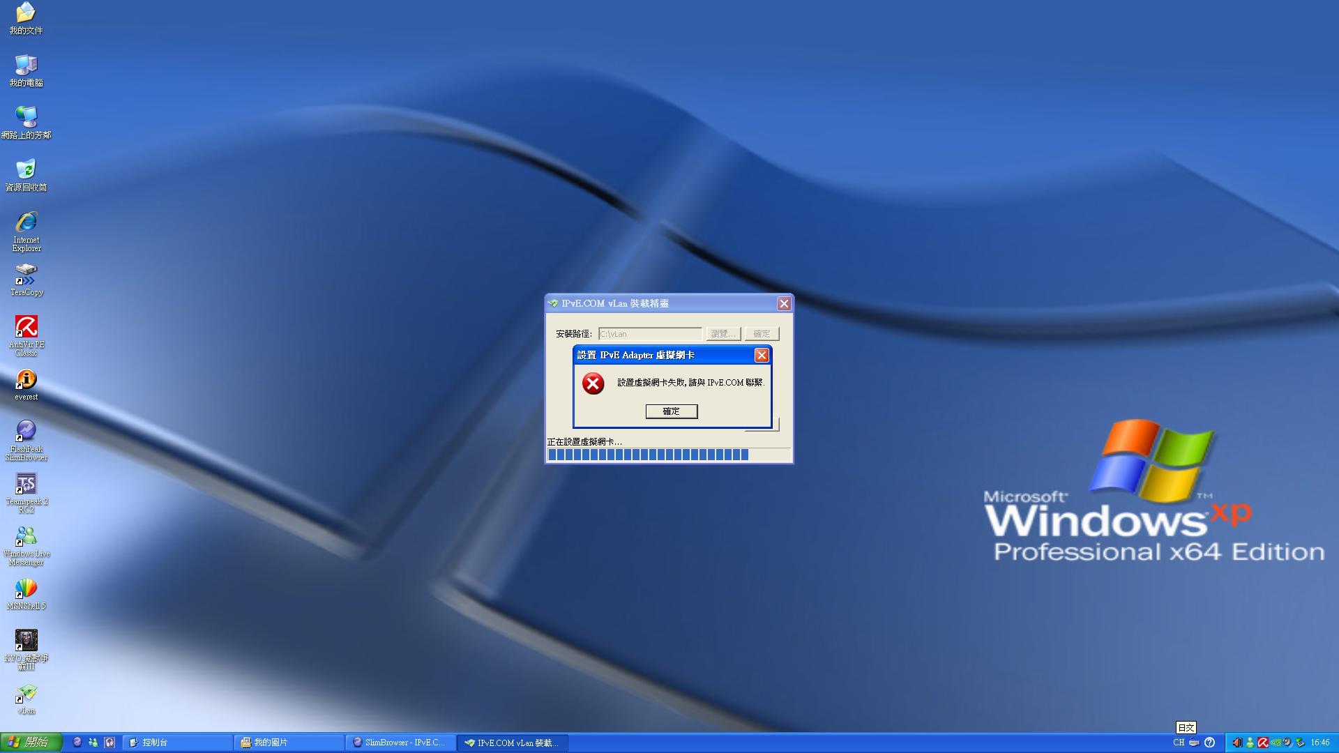 安裝番vlan果時佢就彈左句"設置虛擬網卡失敗"-口-"