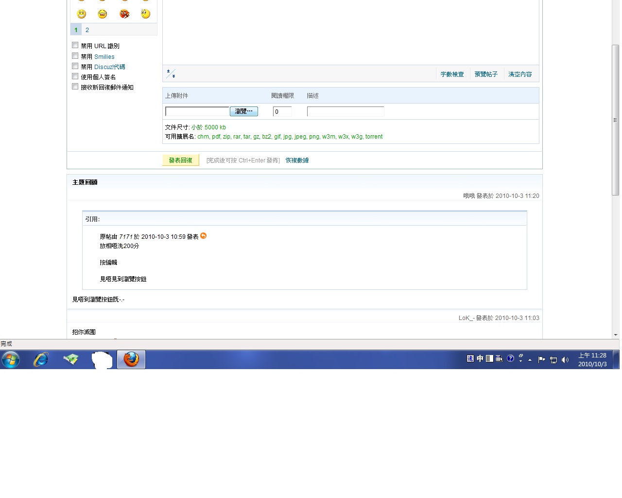 按回覆,如果見唔到,可能就係新手上路唔可以上傳