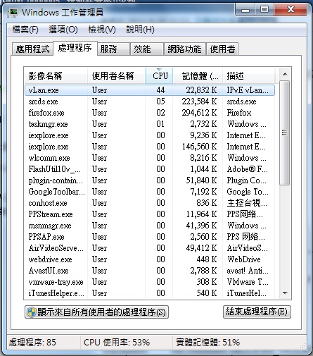 正常情況下, 長時間開啟VLAN 都CPU使用率都唔會因為VLAN 而高過10%, 如出現超出的問題, 請檢查是否已經中左病毒/木馬.