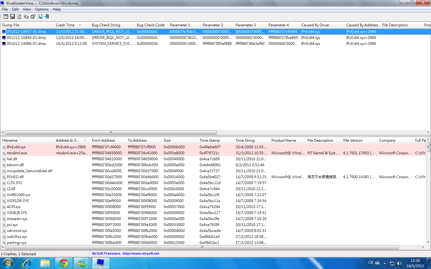 咁前幾日就有時無啦啦會藍屏... 之後dl左個程式睇咩下事但發現幾次都有IPVE字眼, 唔知關唔關事(有圖)