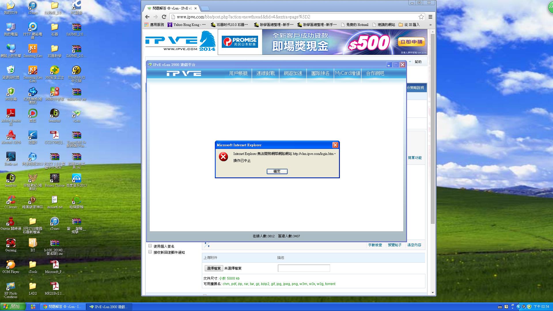 我電腦因為早前del左個ie 以加用緊google chrome但開vlan話我無法連結 ps有圖