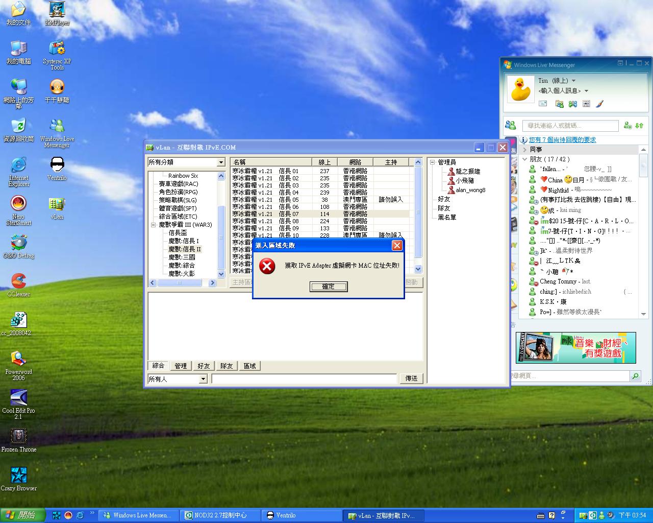 原帖由 小輪 於 2008-4-26 15:53 發表 我都有差唔多GE情況 我岩岩洗機黎 入SER個陣就話 獲取IPVE Adapter IP失敗