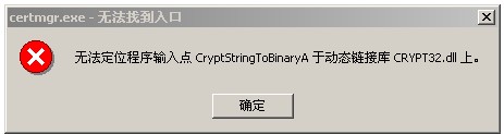 无法定位程序输入点CryptStringToBinaryA于动态链接库CRYPT32.DLL上)