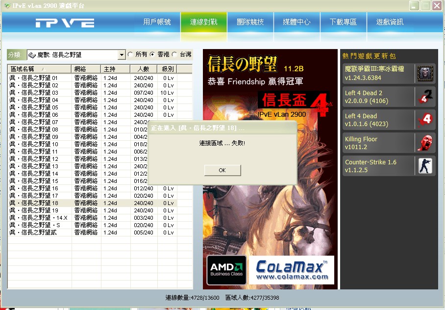佢話 連接區域...失敗!