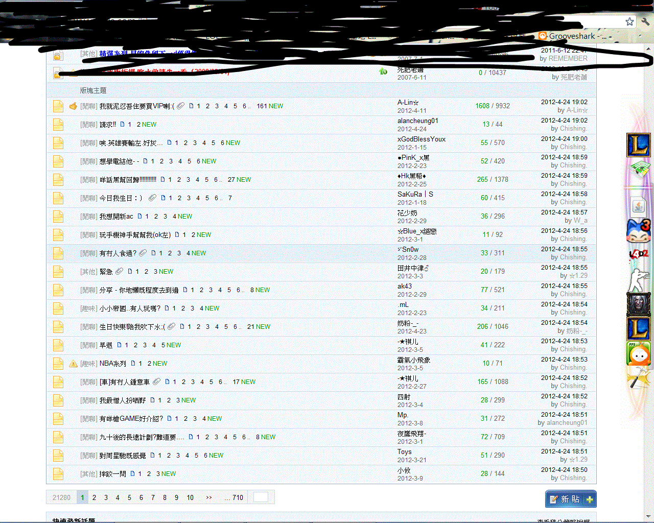 最近訪問的版塊 ...