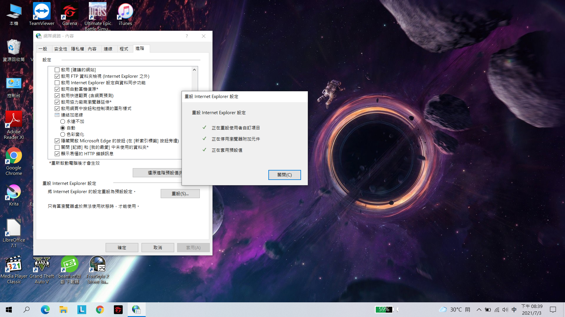 重設 Internet Explorer 設定