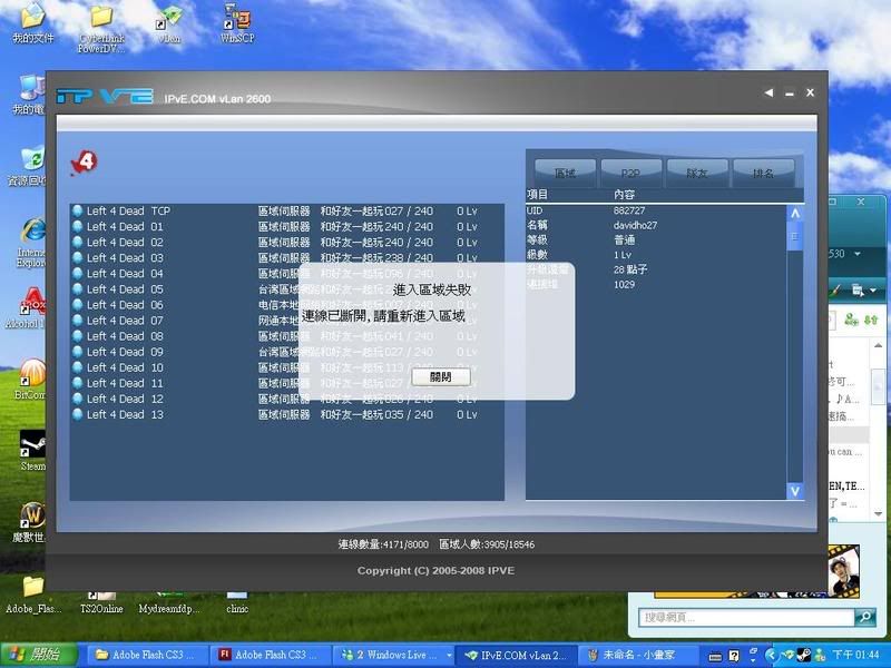 我今日係fd屋企見佢係v lan度一揀其他分流就會彈句類似「連線已中止,請重新選擇」(唔記得句野啦...)