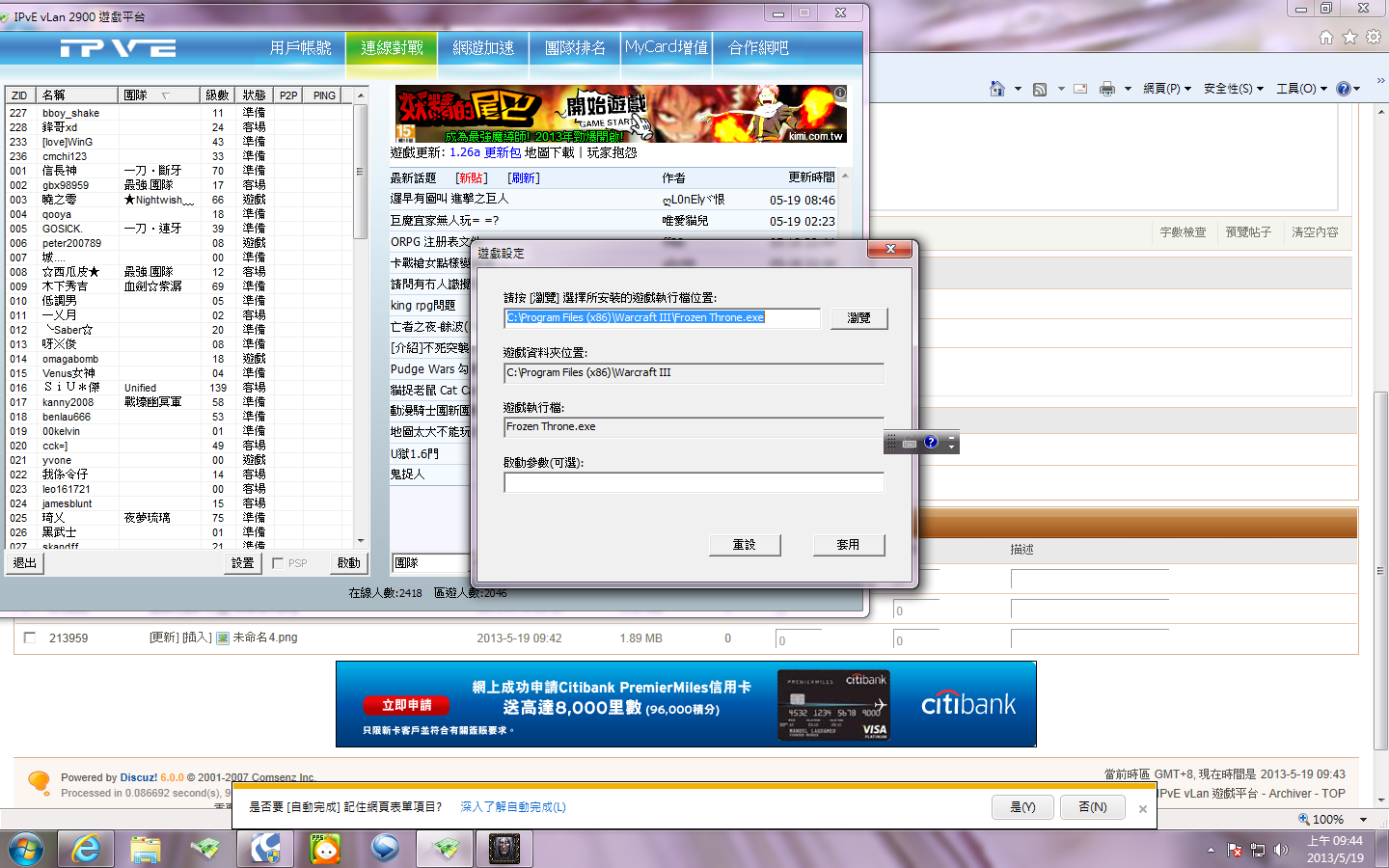 如果入綜合區後, 在桌面直接開 war3 , 情況是否一樣 ?