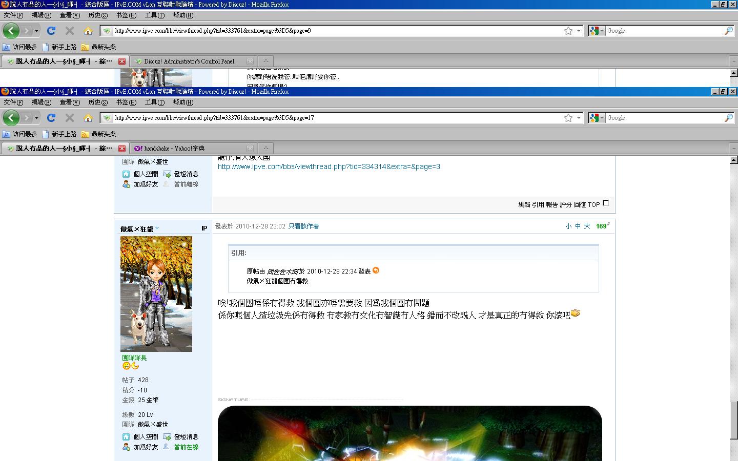 同時作晚本人已搜集不少相關 狂龍會員在綜合討論區連post 罵戰 人生攻擊 粗口等資料