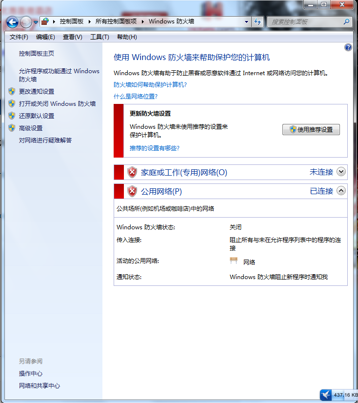 windows7 64位系统自带防火墙,但是已经关掉了。安装了360,但也临时关闭了。