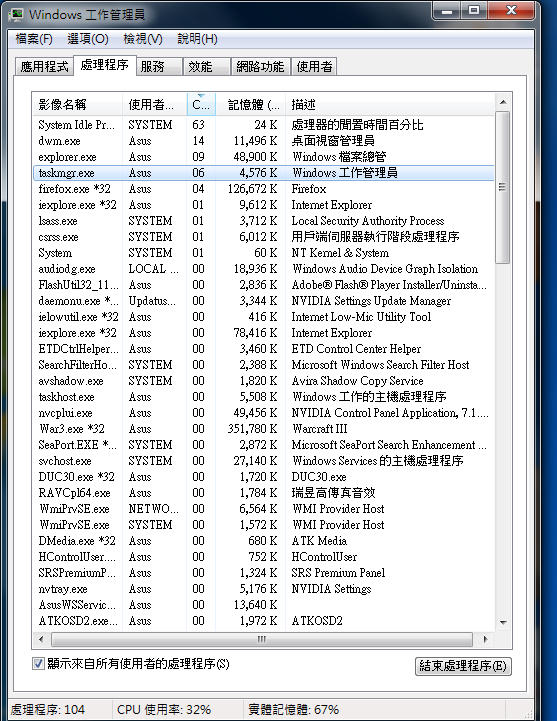 系統:Windows 7 家用進階版 64-bit (6.1, Build 7601) Service Pack 1