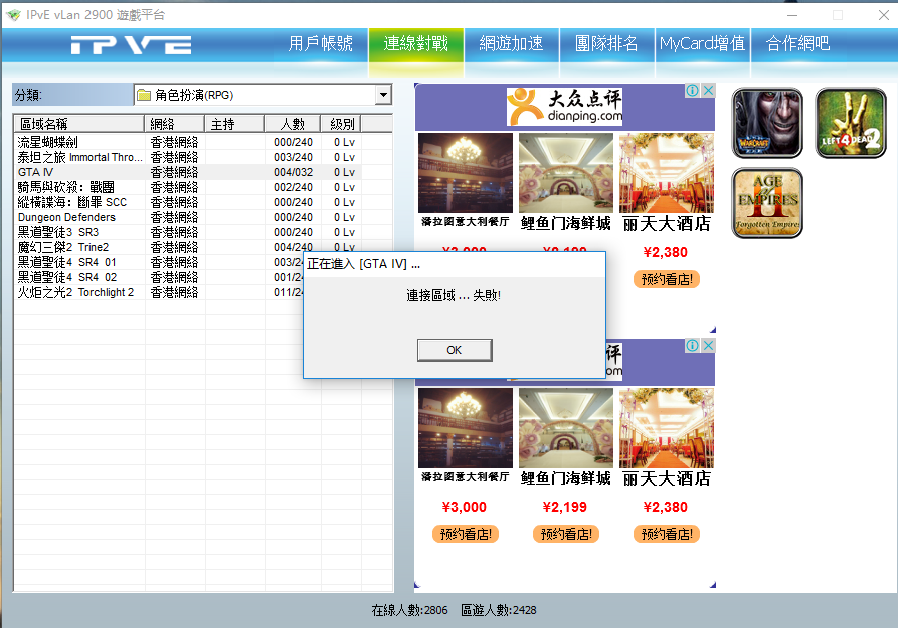 连接区域失败,怎么办。我要和朋友联GTA4