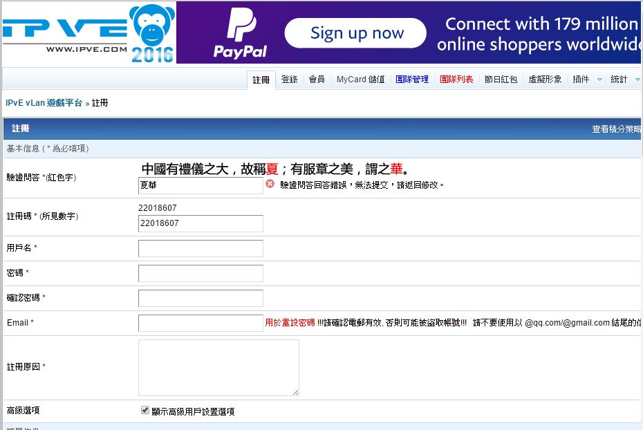 IPvE vLan 遊戲平台 註冊問題