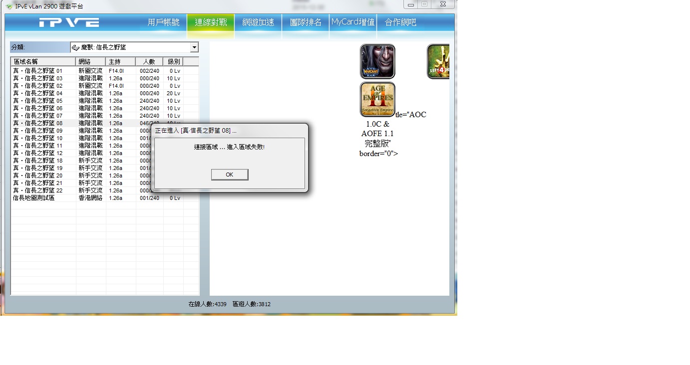 連接區域...進入區域失敗