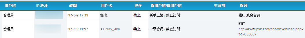 封禁紀錄