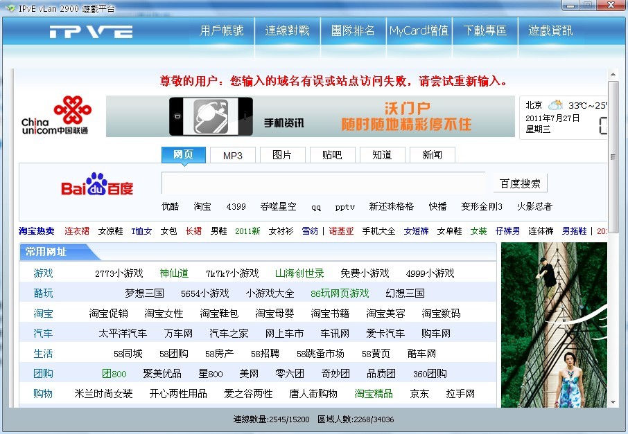 进入vlan 出现’您输入的域名有误‘ 上边的 用户账号 连线对战 都点不了