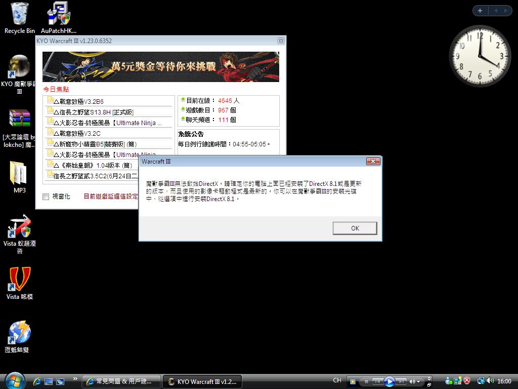 我開war3..佢要我更新影像卡