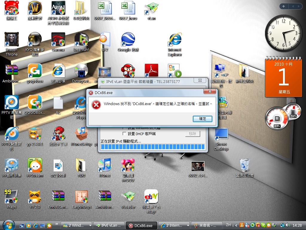 我朋友的VLAN显示正在设置虚拟网卡,然后就一直不动了,为什么?之前出了个提示找不到DCx86.exe点了确定..然后就是正在设置虚拟网卡之后就没反应了..,我装的时候也出了找不到DCx86.exe,但是我点了确定以后仍然可以登录VLAN...为什么我朋友的不行?我们用的都是最新版的2900