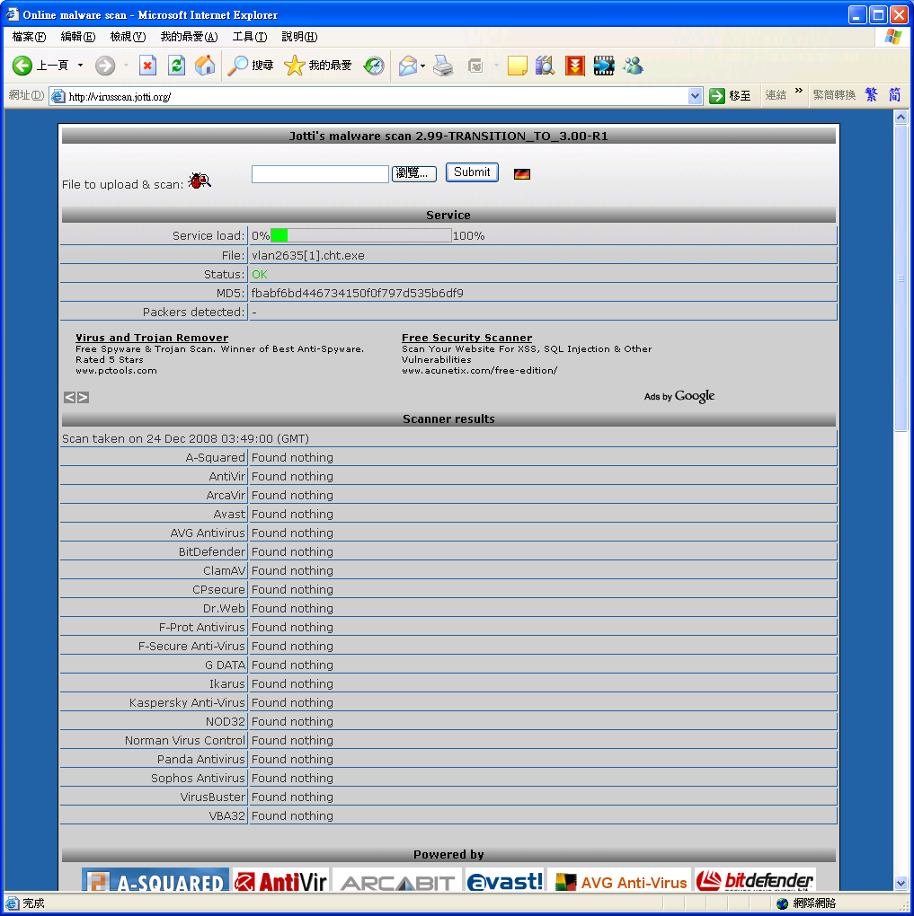 你用緊咩防毒軟件?我岩岩檢查過....我地vlan2635[1].cht.exe並沒有任何病毒.