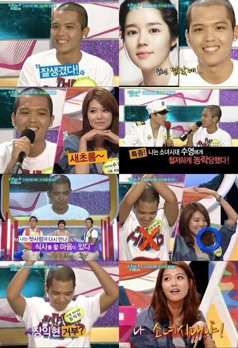 看著兩人對話的MC提問說:“有和初戀再次見面吃頓飯的心情嗎?”秀英欣然答應而張益賢卻做出了X表示出了拒絕意向,令秀英遭受屈辱。秀英還喊道“我可是少女時代啊”,令現場笑聲一片。