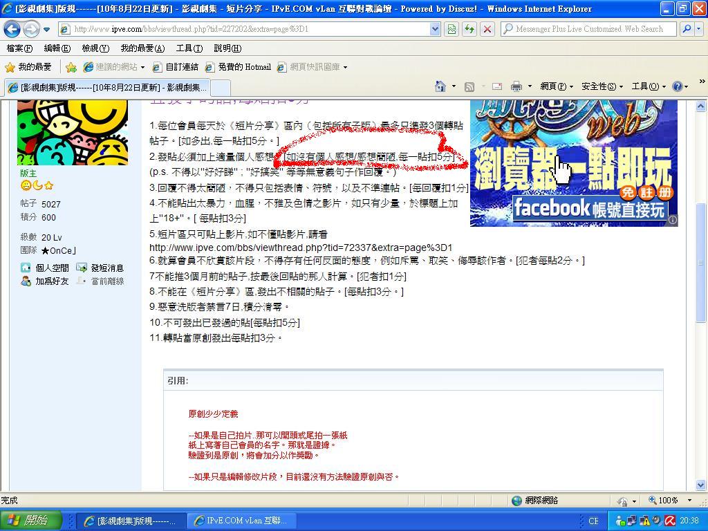 原帖由 A_c 於 2010-9-8 17:39 發表 1‧用心打一篇感想不代表重覆發了貼就不用扣分。 2‧大部分開過貼的人不等於犯了規。 3‧沒有證據,例子等,請不要胡亂說話,[野可以亂食,說話唔可以亂講]。 請看色彩分別我的每句是解釋你的那一句。(不是此回貼) 我 ...