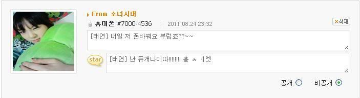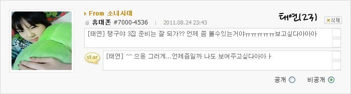 [泰妍] ^^,eueung..yeah..我也在想要到什麼時候呢....我也很想你你你你