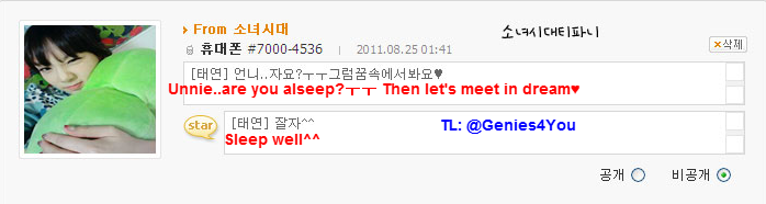 [泰妍] 現在你可以回家了 ^^ 好好睡吧 !!