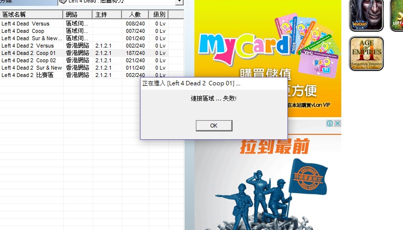 » 連接區域失敗