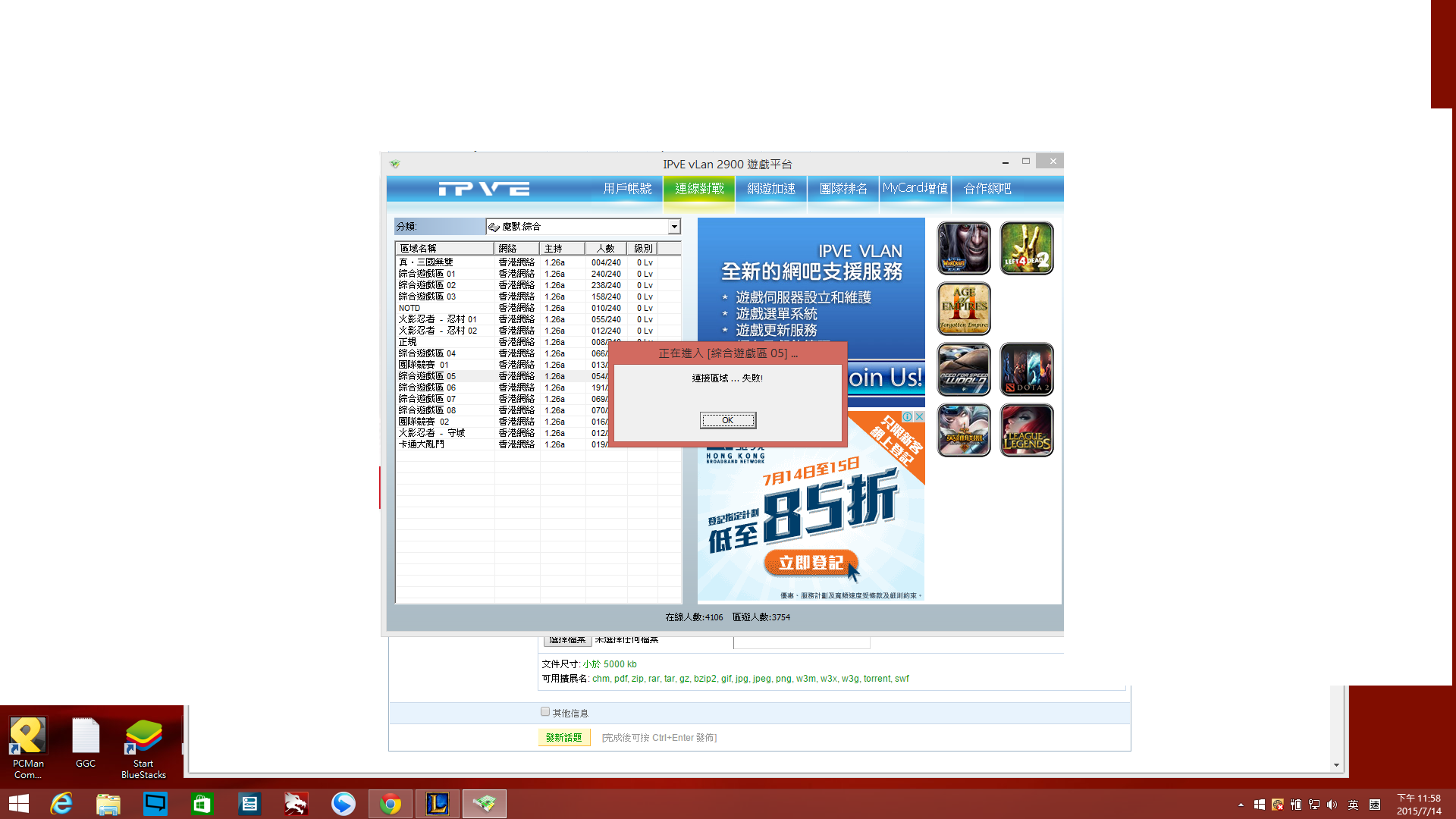 一入SER 就會出現連接區域...失敗