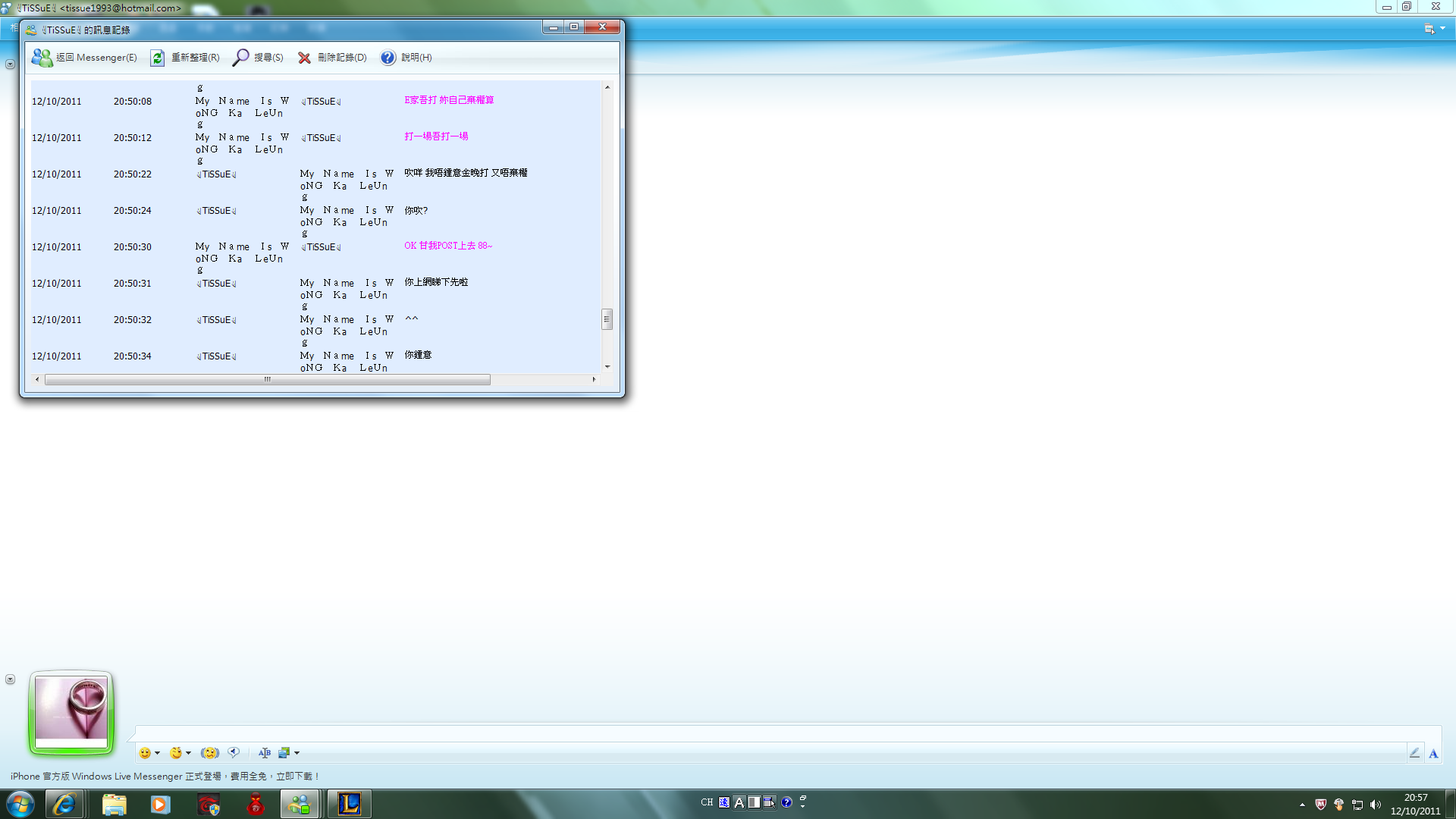 原帖由 LW_CK 於 2011-10-13 10:31 發表 睇完張圖 似係你逼緊我打埋場3分佢 咩叫做一係今日打完 一係叫我棄權? e家你話事 係度扮4條? 你話一早講左一早講左 wa有你講無人講﹖我一早msn同你講左話星期六日打 琴日咁岩我得閒 先同你打番場 大佬 你話自己無 ...